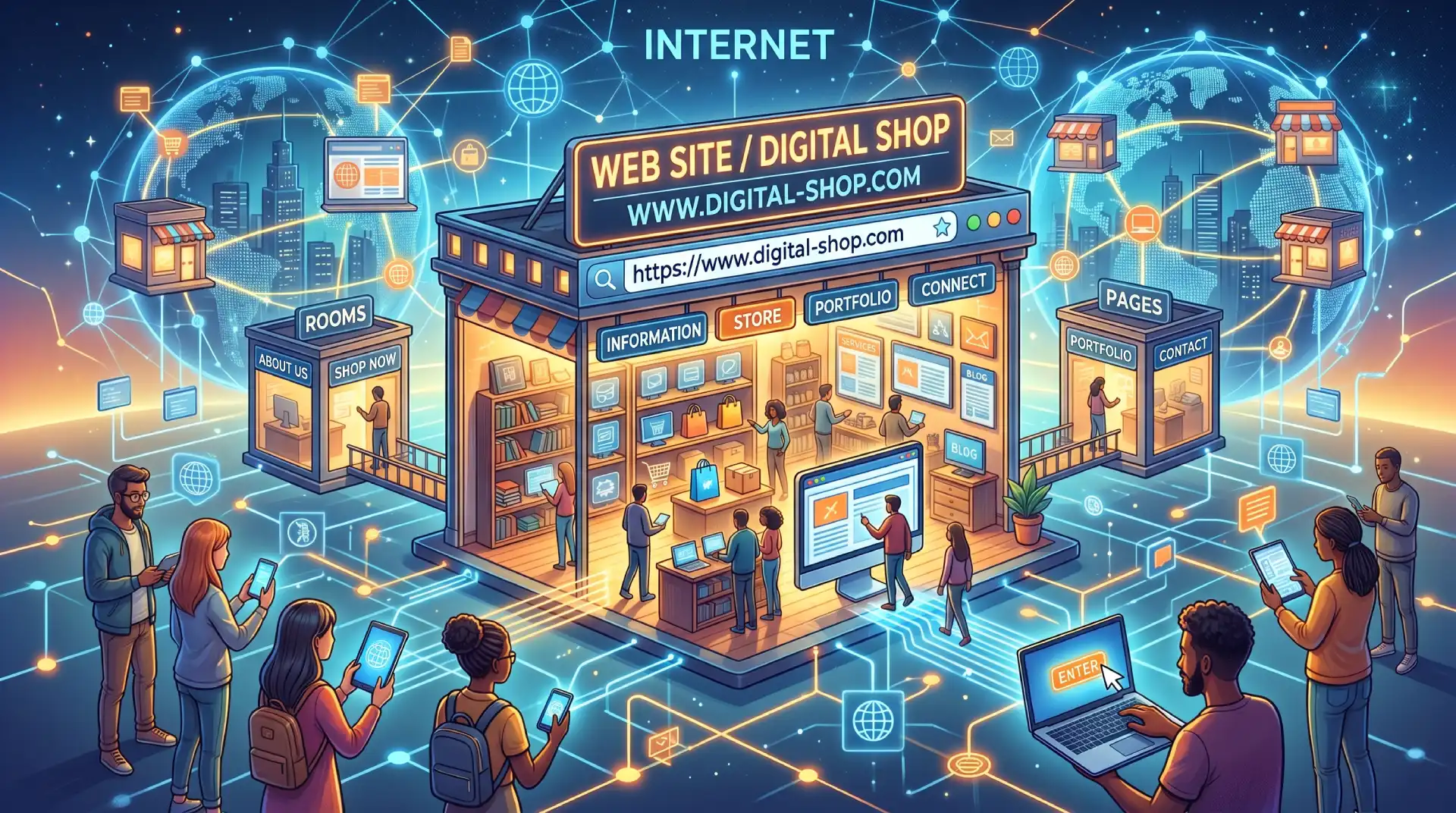 1.2 What is a website A website is a collection of pages that live on the internet and can be visited by anyone with a browser and an internet connection. Just like a physical shop has an address, a name, and rooms full of information or products, a website is the digital equivalent. It can be used to share information, sell products, showcase work, or connect with people.